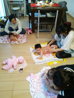 三人のベビちゃん達、みなさんご機嫌で、気持ちよさそうにマッサージを受けています。