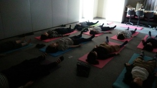 11月からオフィスヨガではマットも取り入れ、椅子で行う日とマットで行う日と、