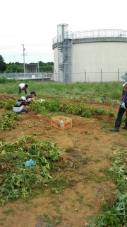 じゃがいもを掘るにはまず伸び放題の雑草を刈ることが必要で・・・![]()